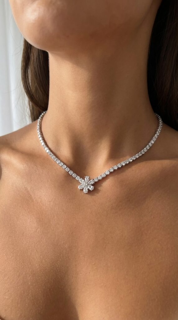 כמות של שרשרת טניס בשילוב תליון פרח