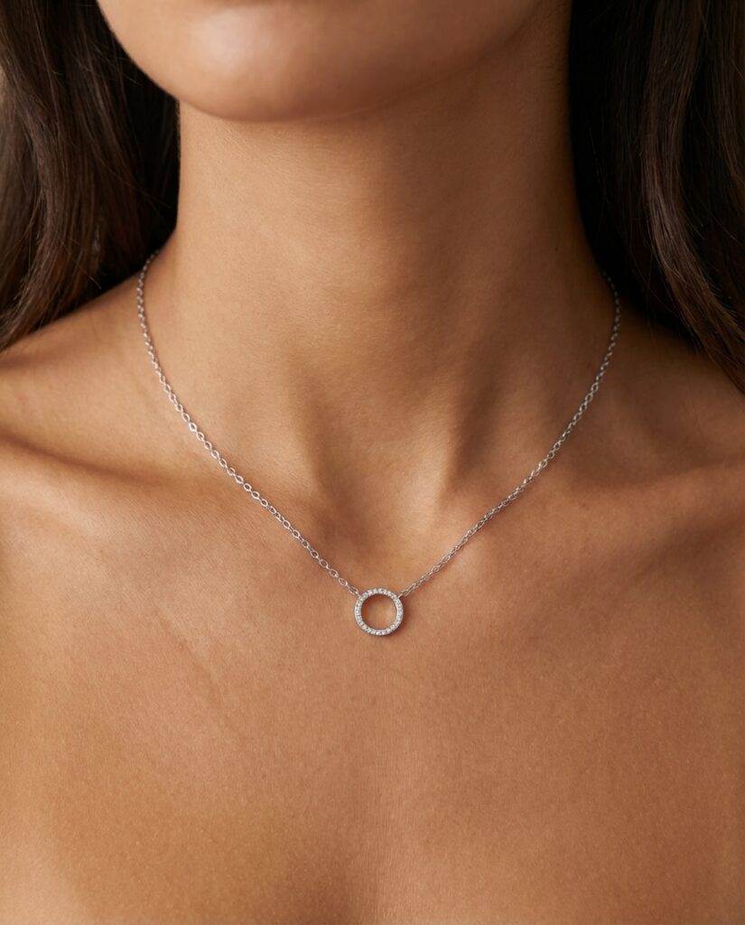שרשרת עיגול חלול משובץ